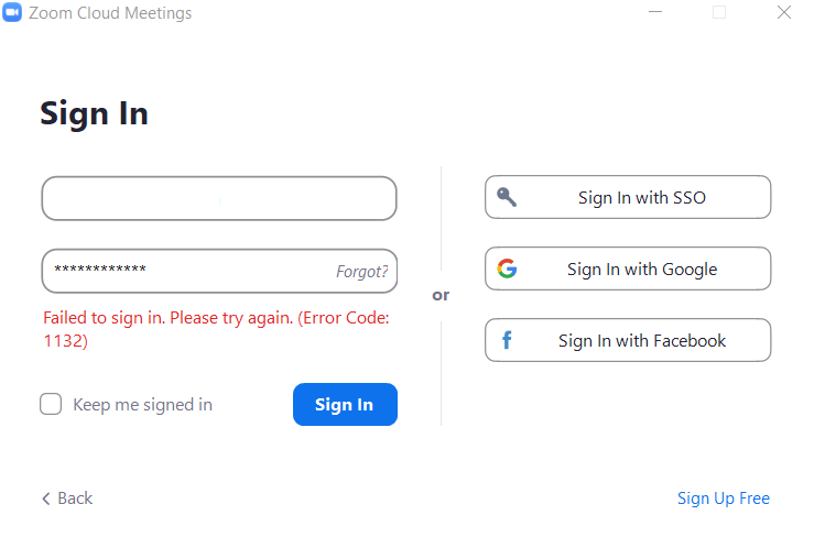 Fix Zoom Error Code 1132 Failed To Sign In Or Meeting Fails